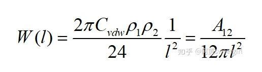 若取l为物质本体内分子间的距离d11,且两半无限体为同一种物质时,则上式的互作用势变为(取绝对值