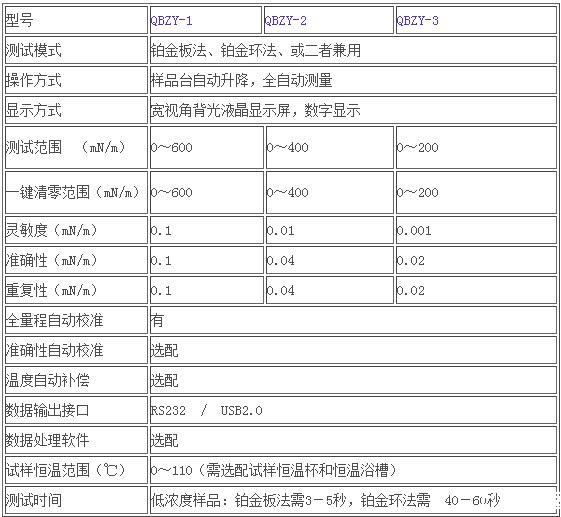 2.全自动测量,铂金板测试时,显示值即为表面张力值;